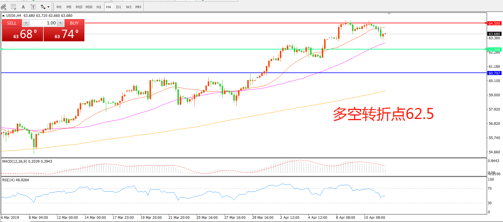 据路透社报道,知情人士透露,如果委内瑞拉和伊朗原油供应继续下跌,油价也持续上涨,OPEC可能于7月开始增产。OPEC认为,如果延长OPEC与俄罗斯实施的减产计划将会令原油市场供应过于紧张。这一消息引发了投资者获利了结的操作,周四, 美国WTI原油周四(4月11日)收跌0.62美元,报63.68美元/桶