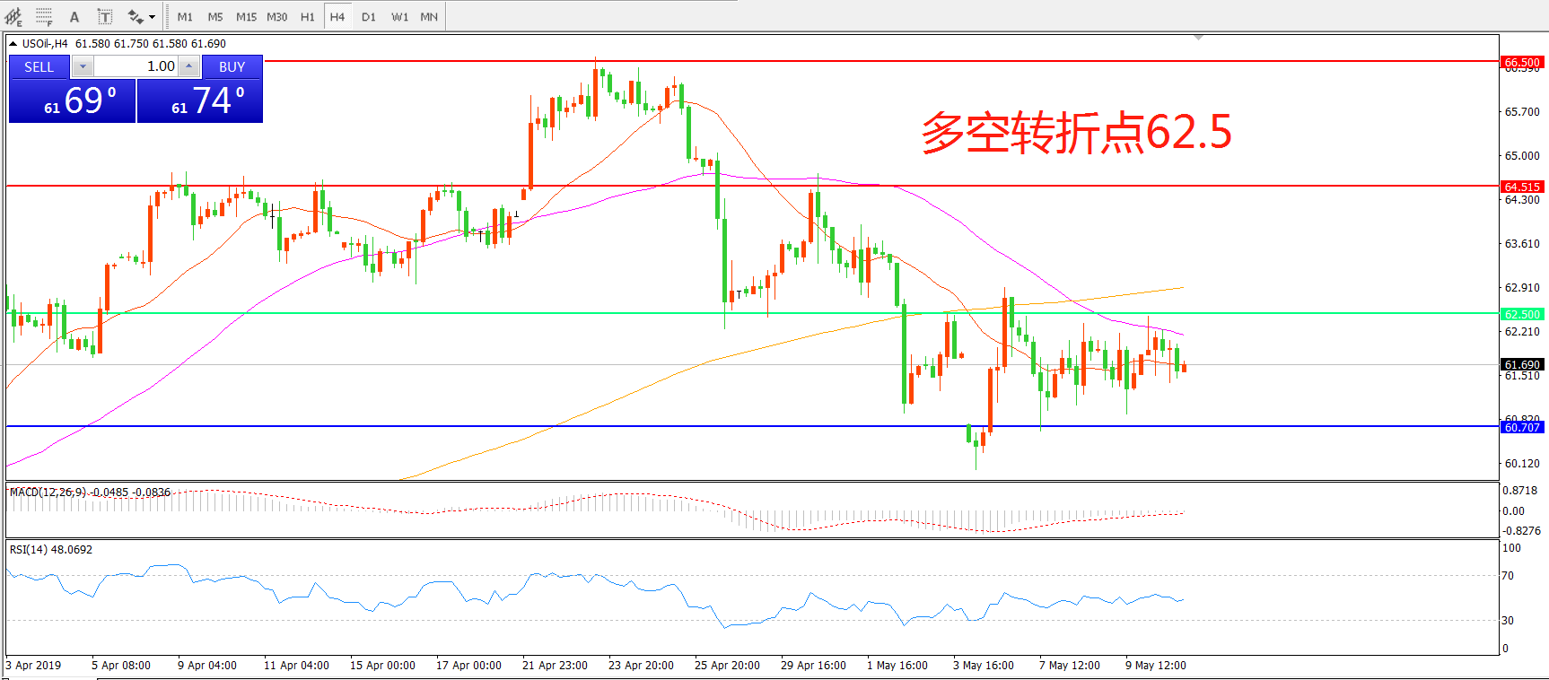 交易策略:在62.50之下看跌,目标60.00    58.00