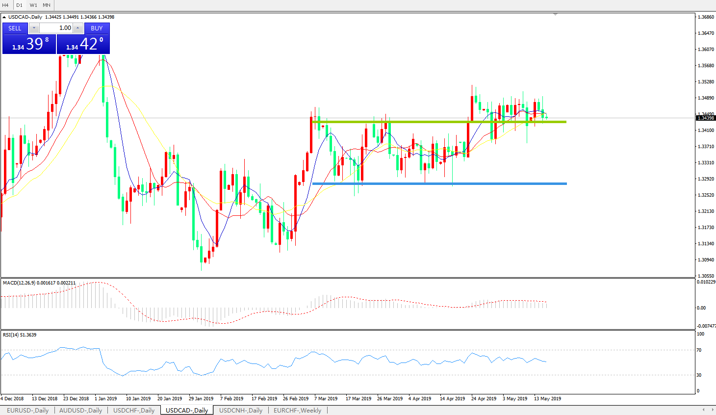 美元兑加元USDCAD 日线图: