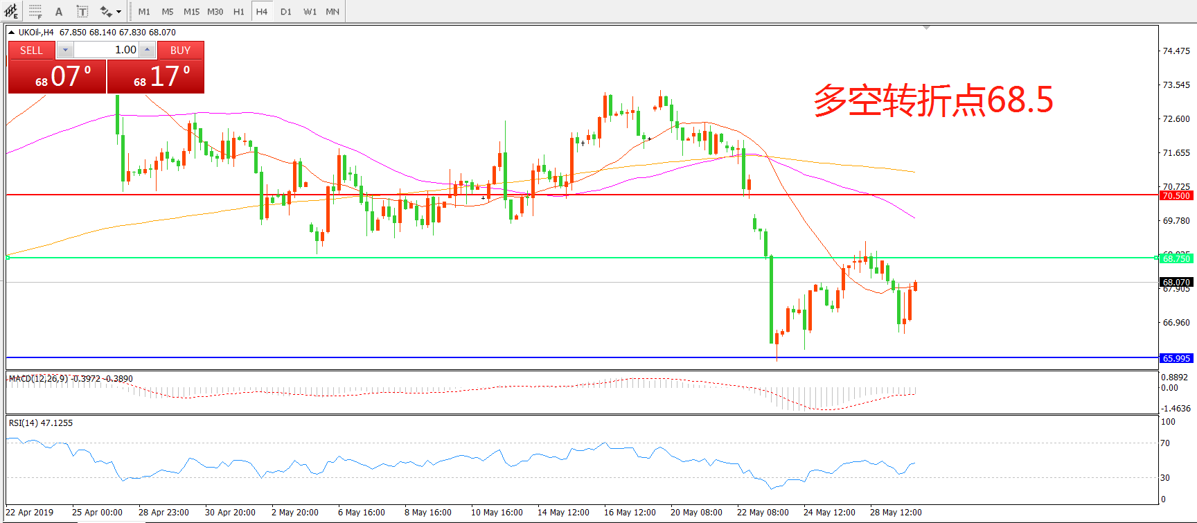 多空转折点:68.50