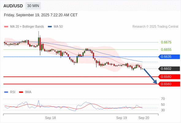 在 0.6635 之下,看跌,目标价位为 0.6580 ,然后为 0.6560 。