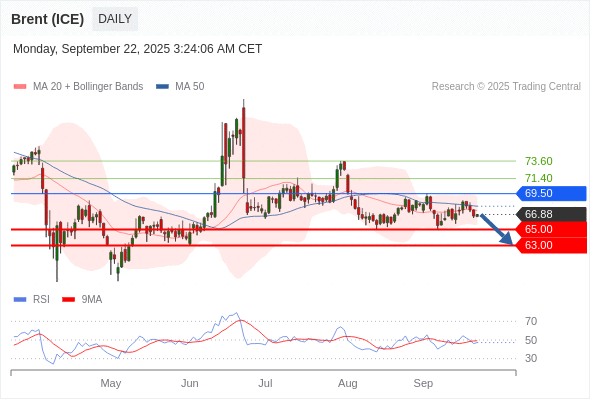 交易策略: 在 69.50 之下,看跌,目标价位为 65.00 ,然后为 63.00 。