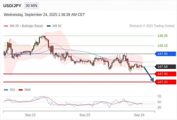 在 147.90 之下,看跌,目标价位为 147.40 ,然后为 147.20 。