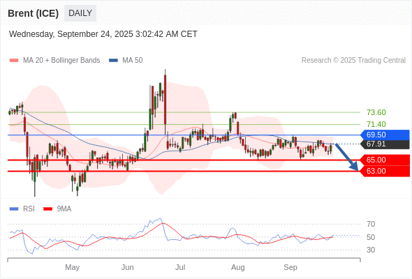 交易策略: 在 69.50 之下,看跌,目标价位为 65.00 ,然后为 63.00 。