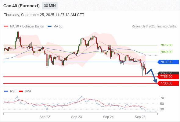 在 7811.00 之下,看跌,目标价位为 7755.00 ,然后为 7730.00 。