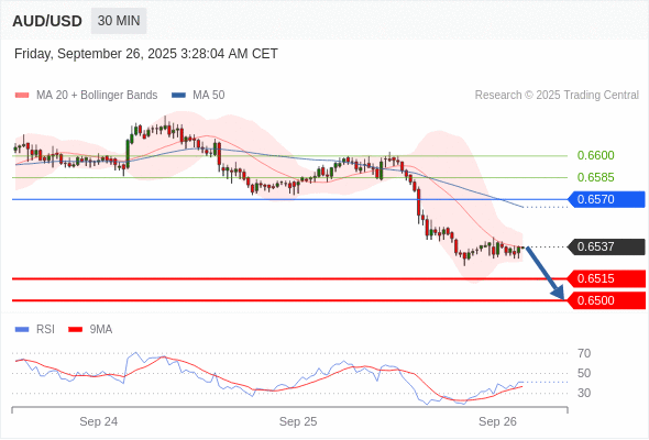 交易策略: 在 0.6570 之下,看跌,目标价位为 0.6515 ,然后为 0.6500 。