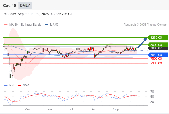 Cac 40 短线: 箱体震荡。