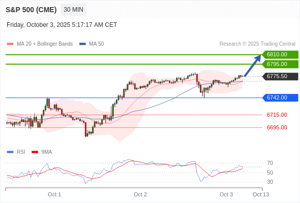 在 6742.00 之上,看涨,目标价位为 6795.00 ,然后为 6810.00 。