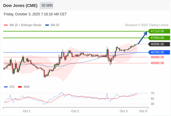 在 46760.00 之上,看涨,目标价位为 47000.00 ,然后为 47110.00 。