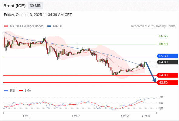在 65.30 之下,看跌,目标价位为 64.00 ,然后为 63.50 。