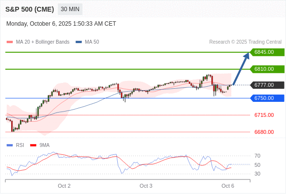 在 6750.00 之上,看涨,目标价位为 6810.00 ,然后为 6845.00 。