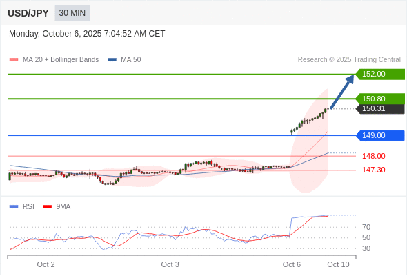 在 149.00 之上,看涨,目标价位为 150.80 ,然后为 152.00 。