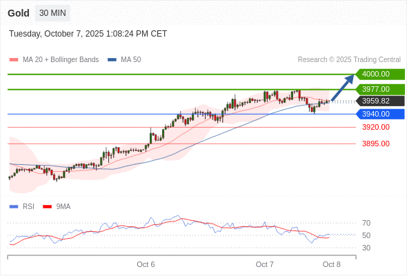 在 3940.00 之上,看涨,目标价位为 3977.00 ,然后为 4000.00 。