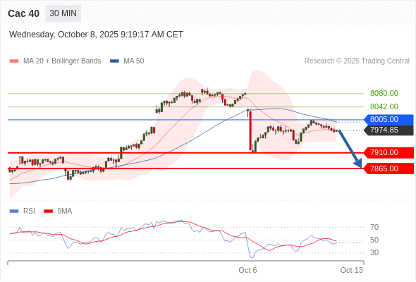 在 8005.00 之下,看跌,目标价位为 7910.00 ,然后为 7865.00 。