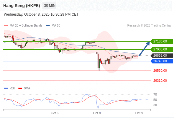 在 26740.00 之上,看涨,目标价位为 27000.00 ,然后为 27180.00 。