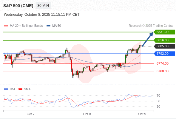 在 6792.00 之上,看涨,目标价位为 6816.00 ,然后为 6831.00 。