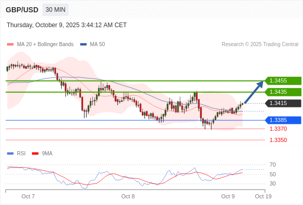 在 1.3385 之上,看涨,目标价位为 1.3435 ,然后为 1.3455 。