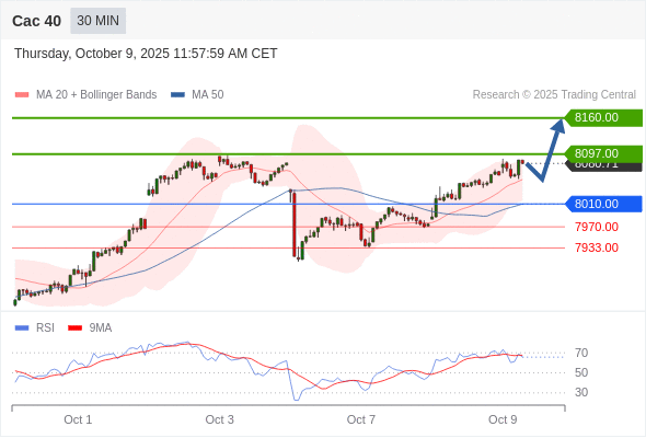 Cac 40 当日内: 期待8097.00。