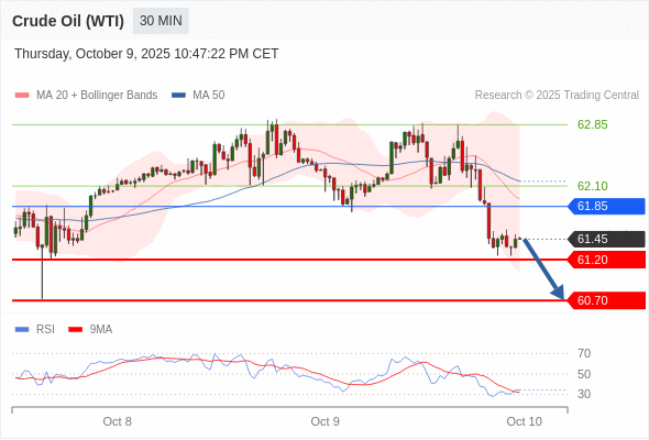 在 61.85 之下,看跌,目标价位为 61.20 ,然后为 60.70 。