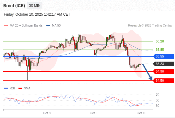 在 65.55 之下,看跌,目标价位为 64.90 ,然后为 64.50 。