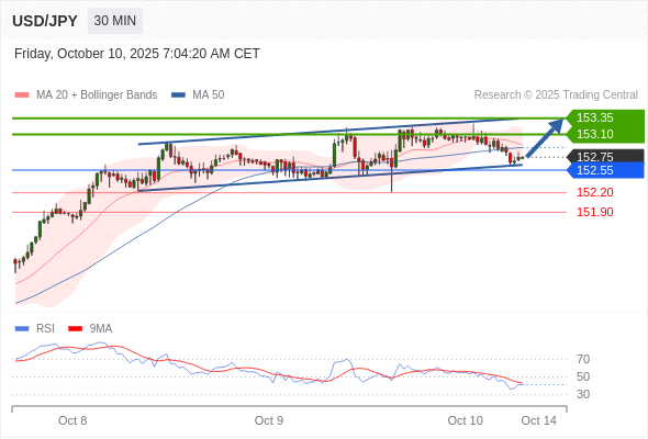 在 152.55 之上,看涨,目标价位为 153.10 ,然后为 153.35 。