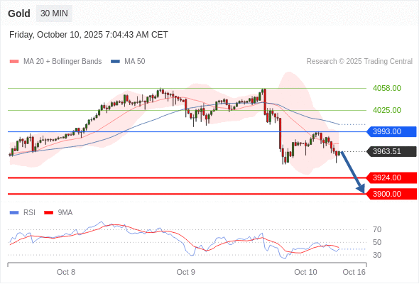 在 3993.00 之下,看跌,目标价位为 3924.00 ,然后为 3900.00 。