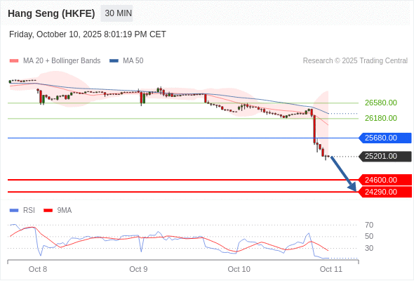 交易策略: 在 25680.00 之下,看跌,目标价位为 24600.00 ,然后为 24290.00 。