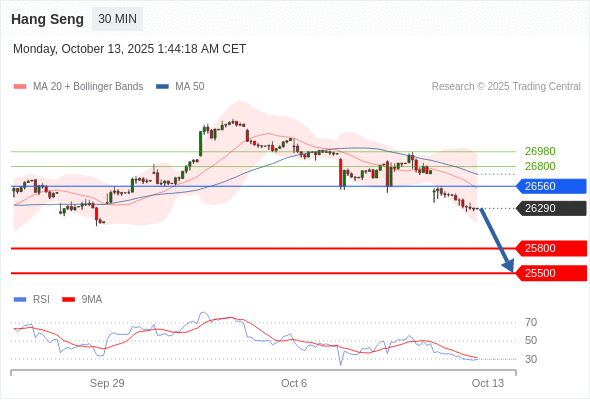在 26560 之下,看跌,目标价位为 25800 ,然后为 25500 。