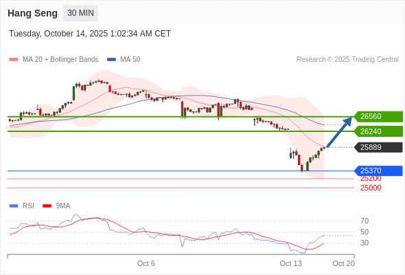 在 25370 之上,看涨,目标价位为 26240 ,然后为 26560 。