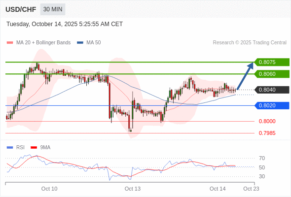 在 0.8020 之上,看涨,目标价位为 0.8060 ,然后为 0.8075 。