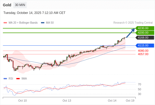 在 4115.00 之上,看涨,目标价位为 4200.00 ,然后为 4230.00 。