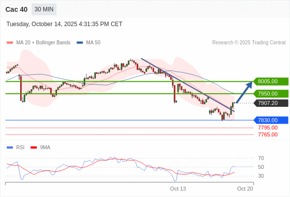 在 7830.00 之上,看涨,目标价位为 7950.00 ,然后为 8005.00 。