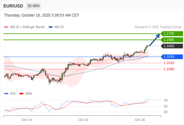 在 1.1630 之上,看涨,目标价位为 1.1685 ,然后为 1.1705 。
