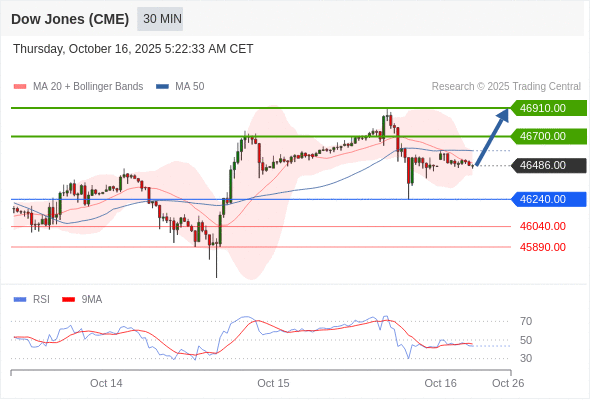 在 46240.00 之上,看涨,目标价位为 46700.00 ,然后为 46910.00 。