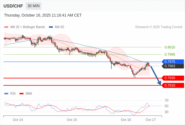 美元/瑞郎 当日内: 短期关键阻力位在0.7975。