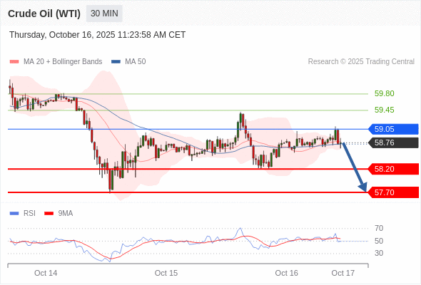 在 59.05 之下,看跌,目标价位为 58.20 ,然后为 57.70 。
