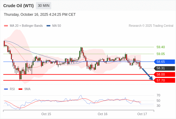 在 58.65 之下,看跌,目标价位为 58.00 ,然后为 57.70 。