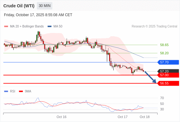 交易策略: 在 57.70 之下,看跌,目标价位为 57.00 ,然后为 56.55 。