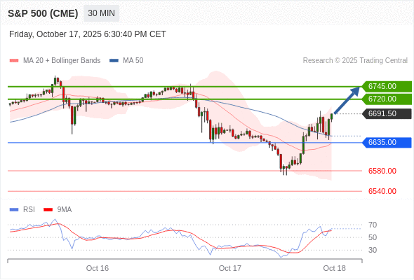 在 6635.00 之上,看涨,目标价位为 6720.00 ,然后为 6745.00 。
