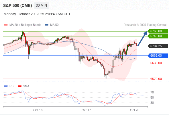 在 6665.00 之上,看涨,目标价位为 6745.00 ,然后为 6765.00 。