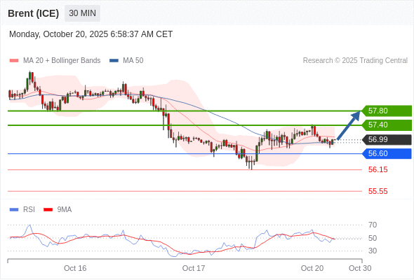布伦特原油 (ICE) (Z5) 当日内: 在60.60之上,看涨。