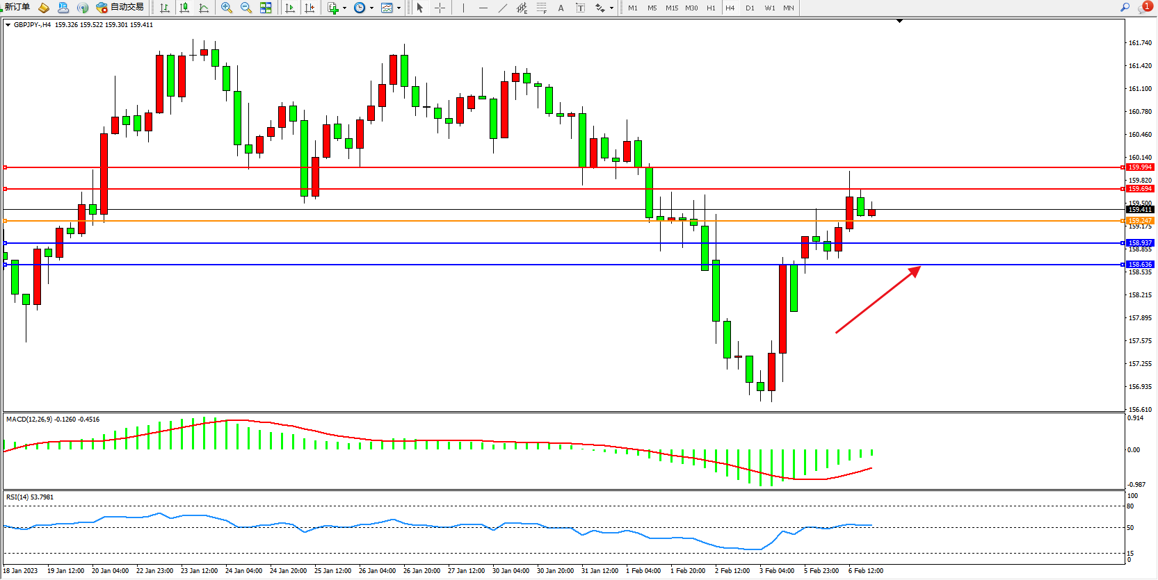 4小时图看:多头动力强势反转拉升上扬,短期多头情绪涌现,不断向上移动中,MACD指标处于空头区域维持震荡上移,RSI指标处于50均衡线上側弱势徘徊;