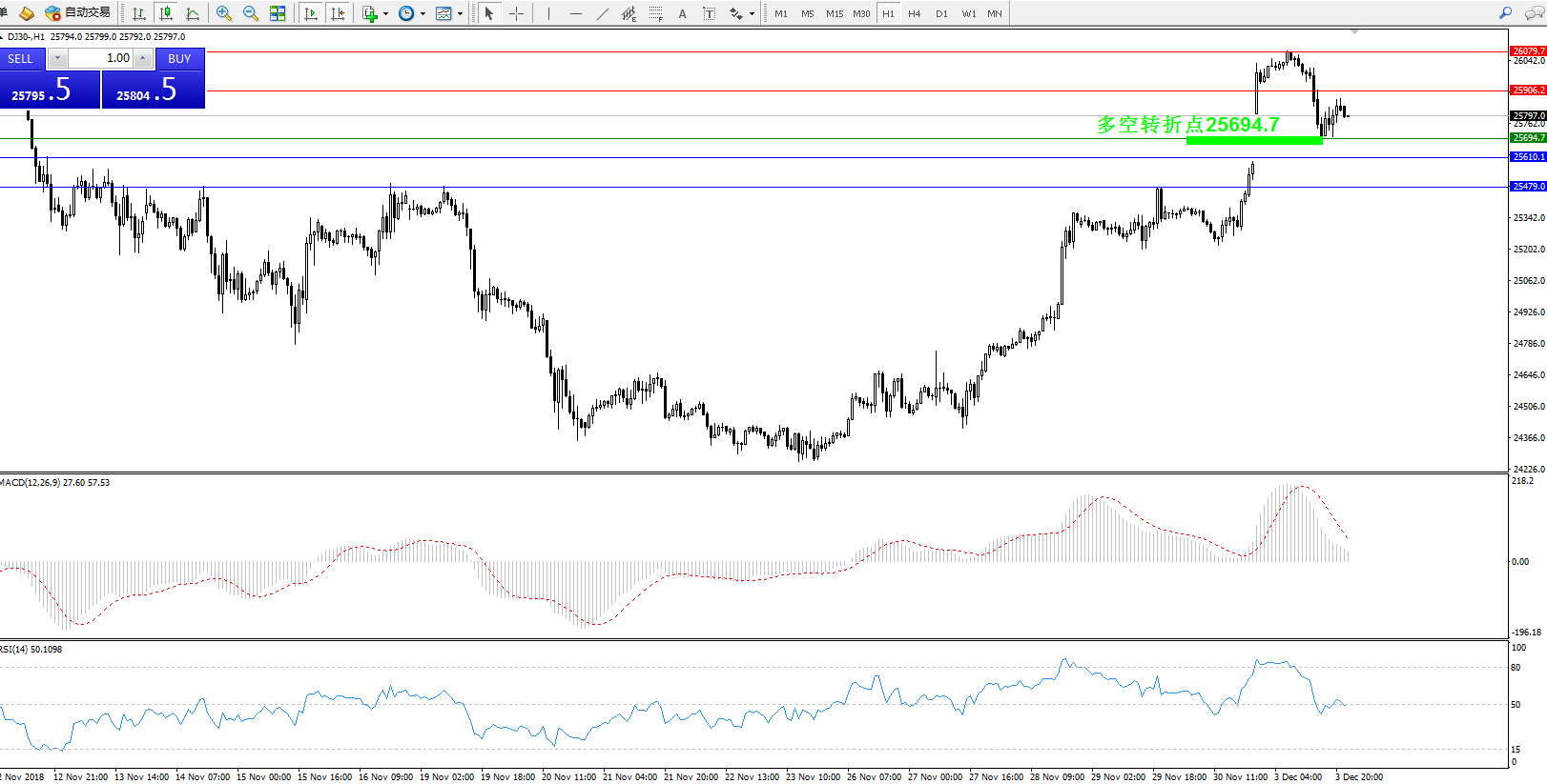 交易策略:25694.7上方看涨,目标25906.226079.7