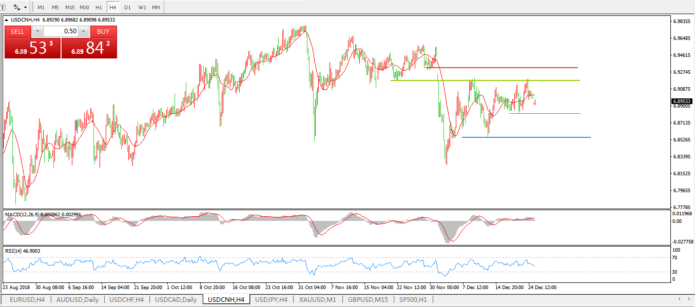 交易策略6.9200下,看跌,目标价位为6.8800,然后为 6.8545