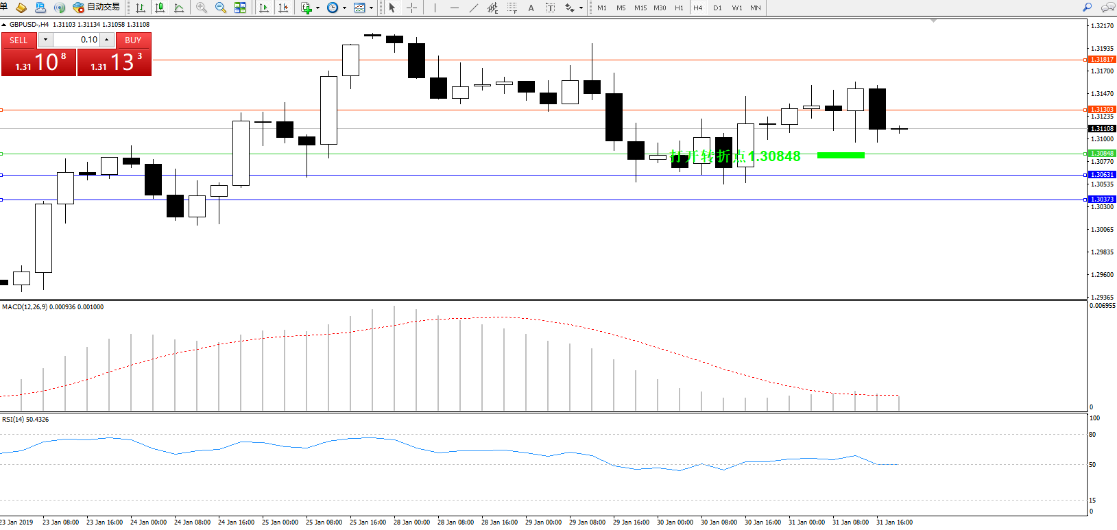 交易策略:1.30848上方看涨,目标1.31303、1.31817