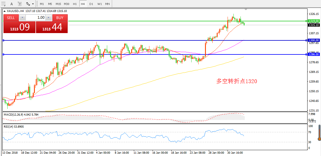 交易策略:在1320.00之上看涨,目标1330.00  1345.00
