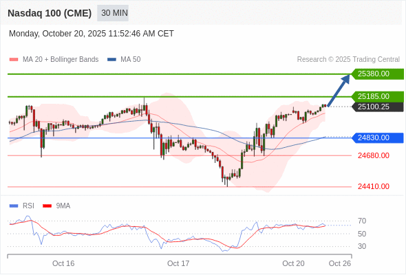在 24830.00 之上,看涨,目标价位为 25185.00 ,然后为 25380.00 。