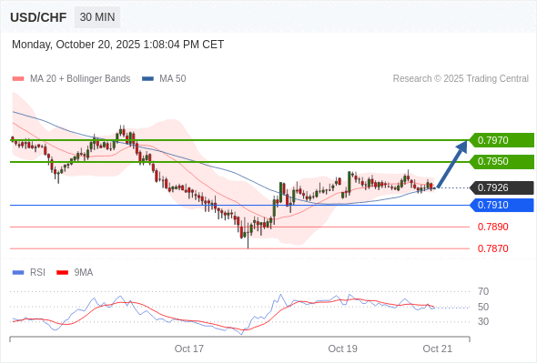 在 0.7910 之上,看涨,目标价位为 0.7950 ,然后为 0.7970 。