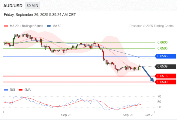 在 0.6565 之下,看跌,目标价位为 0.6515 ,然后为 0.6500 。
