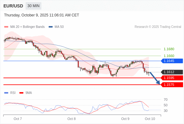 交易策略: 在 1.1645 之下,看跌,目标价位为 1.1595 ,然后为 1.1575 。